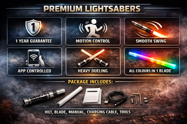 The custom lightsabers and accessories offered are independent creations and are not affiliated with, endorsed by, or sponsored by the trademark holders. Any use of names or descriptions is for descriptive/reference purposes only and does not imply any official association.